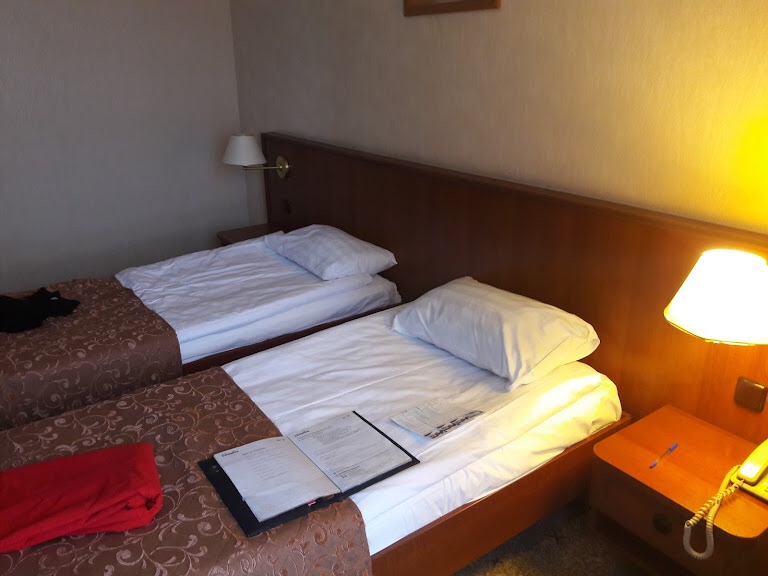 With our exhausted and puzzled group waiting anxiously in the lobby, I steered my shaky legs down the steps to a large, dimly-lighted, unfurnished and unoccupied room. I called out — “Hello?” — and waited. After a few seconds, I called out again, louder. “Hello?!!” Finally, a man emerged from behind a closed door, and I told him I was looking for my two suitcases. Showing him my baggage claim check, and carefully spelling my name, I waited while he went back through the same doorway. About 12 hours later — all right, it was just a couple of minutes, but it felt . . . you know — he returned, miraculously with my actual bags, which seemed no worse for the wear. I resisted hugging him, but did say thank you about 100 times, and struggled back up the steps, shlepping my bags behind me. My fellow travelers heaved a collective sigh of relief when I returned in one piece, and we all headed for our assigned rooms. But as Tamara handed Gisela’s and my room keys to us, I swear she looked at me strangely. Or was I simply coming down with early symptoms of Soviet paranoia? I didn’t have any pills for that.