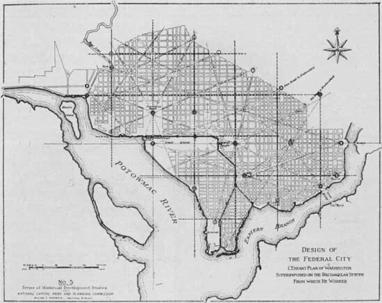 And I haven’t yet mentioned the fact that he divided the city into four quadrants: Northwest, Northeast, Southwest, Southeast, each with its own grid of numbered and lettered streets . . . and its share of those diagonal avenues. So that the same address can appear in four different parts of the city, and when giving someone an address, you have to remember to specify which quadrant you’re talking about. So there might be, for example, a 300 K Street, N.W., N.E., S.W. and S.E. The eastern and western halves of the city are divided by the U.S. Capitol Building complex, as are the northern and southern halves; so to the east of the Capitol are First Street, N.E. and First Street, S.E.; to the north are “A” Street, N.E. and “A” Street, N.W.; to the west of the Capitol . . . Oh, what the hell! Just look at a map.
