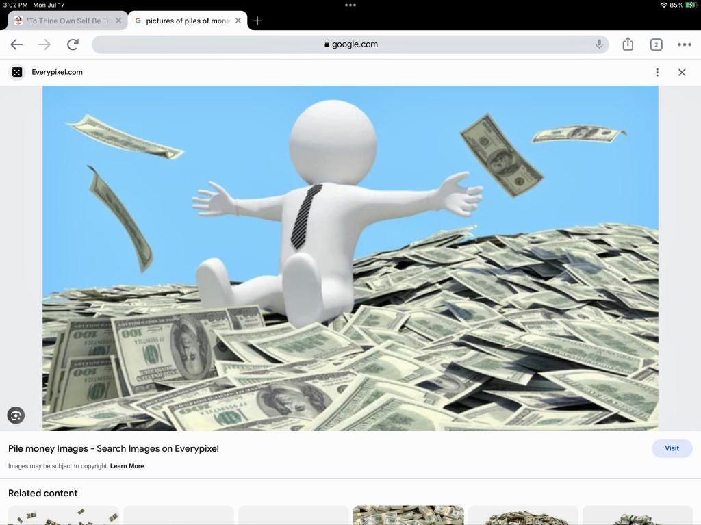 Now seriously, what does one do with $300 million? After you’ve finished rolling around in it, that is. I mean, logistically . . . what the hell do you do with it??!!! You don’t just plunk it into your checking account and head for the nearest Rolls Royce dealership. Clearly, you take some — maybe 20 or 30 million — to be put to some immediate use, like sharing with your family, contributing to your favorite charities, and buying that forever home you’ve always dreamed about. But the bulk of it has to be invested somewhere, preferably somewhere secure. So do you begin with your checking account, and then start making wire transfers to . . . Well, to whom? Or what? And how? Where do you buy gold bullion, for example? And do you suppose Fort Knox has private safety deposit boxes? Do you start a foundation of your own for some worthy cause? And if so, where and how do you begin that process?