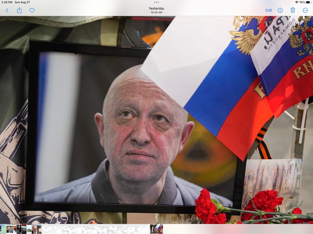 Even before there was “proof” of his death, at least one memorial to him had been created, in front of the Wagner Center headquarters in St. Petersburg. And because of the manner of his death, my sense is that — correctly or not — he may well be remembered by some as the victim in this melodrama: the man who dared to revolt against a dysfunctional Russian military establishment and its leaders; was then banished for his efforts; and was ultimately blown to bits.