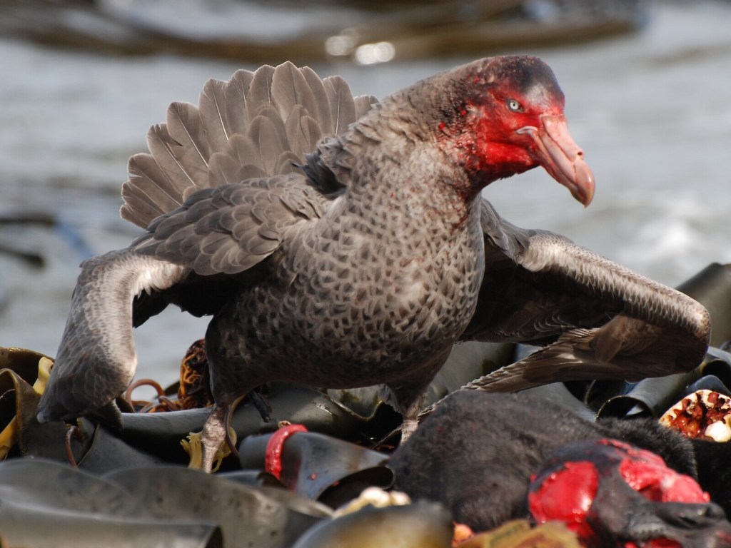 First of all, it’s a bird. A rather large seabird, ranging in size from 6.6 to 11 pounds, with a wingspan of 59-83 inches and a body length of 31-37 inches. In flight, it is described as bearing a slight resemblance to an albatross; but it is a particularly ugly bird, with a huge beak and small, suspicious-looking, beady eyes. At one time, petrels were thought to be a divine warning that storms were on their way; they have been referred to as “water witches,” “Satanites,” and “birds of the devil,” due to their association with storms. But that’s not all they are today.