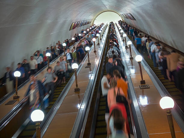 The Moscow Metro escalators are not only terrifyingly long and steep; they’re incredibly fast. You literally have to jump on and off to keep from being bumped from behind. Some were originally built as temporary bomb shelters during Soviet times, with their own water system and power generators. But a direct bomb hit could have caused the entire structure to collapse, so who were they kidding? It was a wonderfully efficient Metro system, though, and I rode it quite a bit; the nearest station was only about a kilometer from my apartment building.