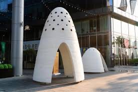 3) A Space For Humans and Pigeons To Share Is Among the Highlights of Dubai Design Week. Okay, this one requires explanation. First, it’s not a residence; it’s a shade shelter, inspired by “the historical significance of pigeon towers in the Arabian Peninsula, where buildings that often featured beautiful arches and detailed engravings were built to protect pigeons during harsh weather and collect their feces for use as fertilizer, as well as showcasing the wealth of the tower’s owner. [The new design] features pigeon nests at the top of the oblong structure, while three arched entrances at the bottom welcome human visitors. The sections for humans and pigeons are separated, and bird feces collected from the top section will be used as fertilizer for plants in Dubai’s Design District.” Well, that’s a relief! But I once had two pigeons take shelter for the winter in a corner of my balcony where I had stored my outdoor furniture under a tarp. When I found them in the spring, they were decidedly dead, frozen solid, and their poop — also frozen — was scooped up, by me, to become garbage, not fertilizer. I want nothing more to do with pigeons, thank you.