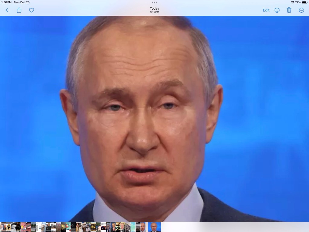 In 2020, Navalny survived an attempt on his life when he was poisoned with Novichok, a Soviet-era nerve agent not available to the general public. He was treated and his life saved in Germany, where the substance was identified. Upon returning to Moscow in January of 2021, he was immediately arrested and imprisoned. Even before then, in December of 2020 — while denying the Russian government’s involvement in Navalny’s poisoning — Vladimir Putin had said that, “if the Russian security services had wanted to kill Navalny, they ‘would have finished’ the job.” [CNN, Dec. 25, 2023.] Nice.