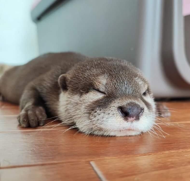 And speaking of cute . . . Okay, I know I shouldn’t choose favorites, but I can’t help it. This snoozing baby otter just cries out to be picked up and snuggled and never put down. And do I see a half-open left eye? What a sneaky little devil you are, which perversely makes you even more lovable. If only it were legal to have you as a pet . . .