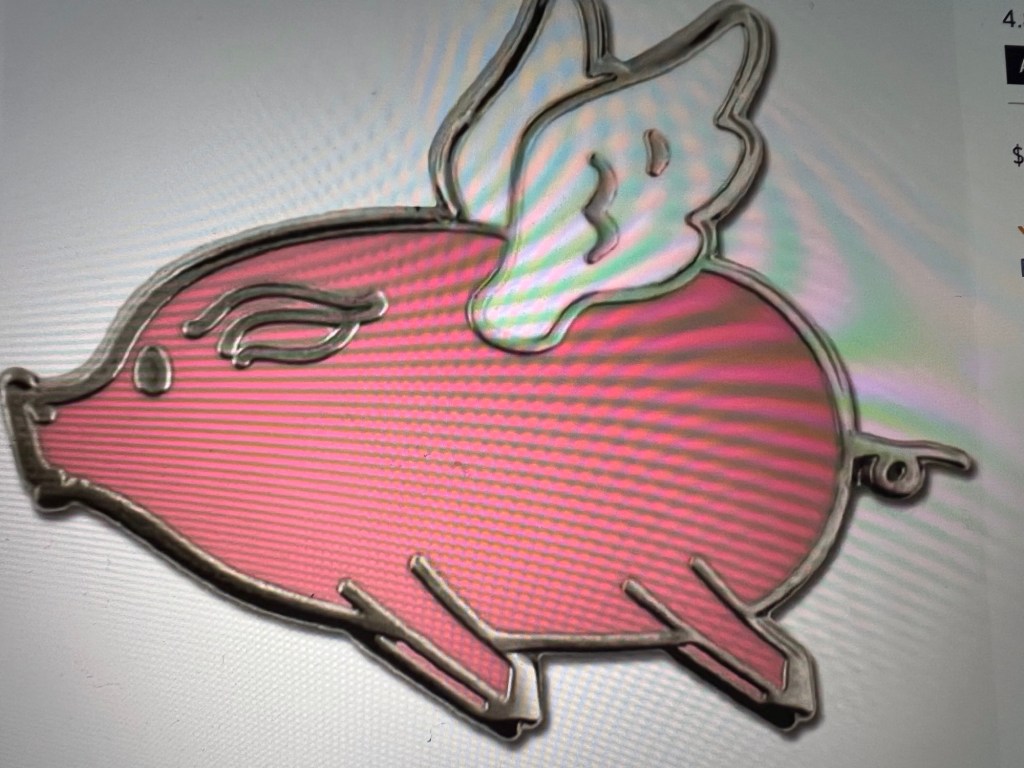 I should also point out that my sister had a favorite expression when she wanted to indicate that something was never going to happen: “When pigs fly!” Thus, the little wings.