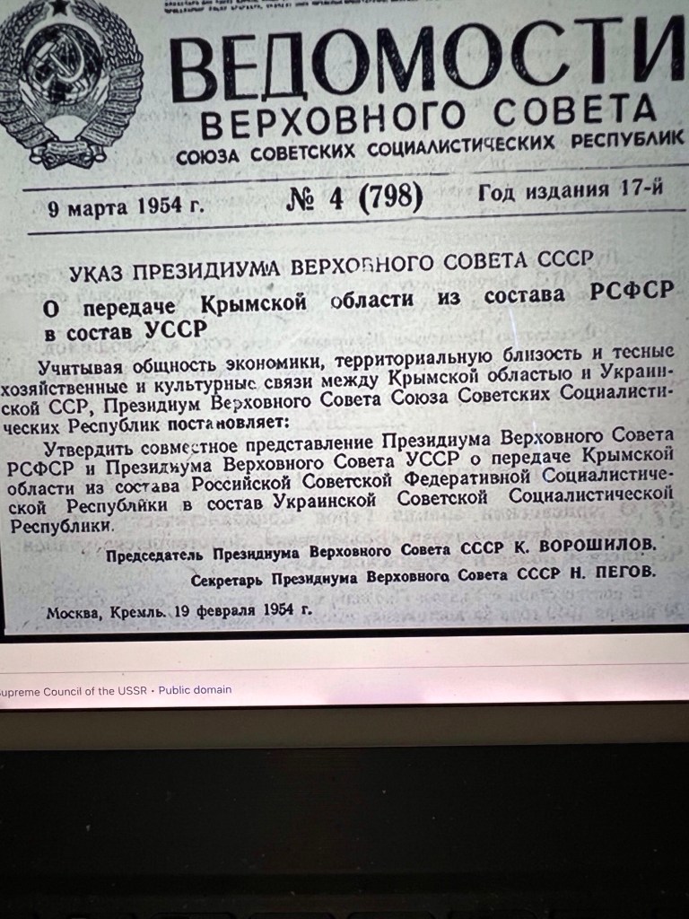 Transferring the Crimean Region from Russia to Ukraine – March 9, 1954