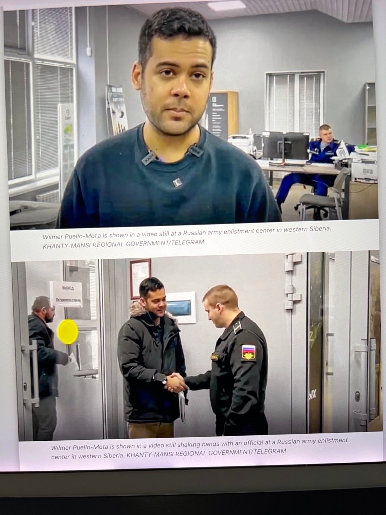 Puello-Mota had been charged with possession of sexually explicit images of a minor (17-year-old female), and was scheduled to appear in court in Rhode Island in January, where he was expected to enter a negotiated guilty plea. However, according to his attorney, he failed to show up and instead boarded a flight from Washington, D.C. to Istanbul, Turkey, and somehow traveled from there into Russia. He allegedly told his attorney that he was joining the Russian army to fight in Ukraine. [Steve LeBlanc and Nick Perry, Associated Press, April 10, 2024.]