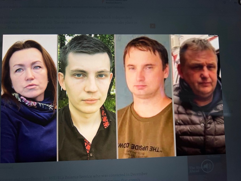 But perhaps — just perhaps — the continued international pressure on Putin will finally have some effect. The resolution calls for “the immediate and unconditional release and compensation of all political prisoners .. . . unjustly imprisoned journalists, including Alsu Kurmasheva and Evan Gershkovich, and their families, for the restoration of freedom of expression and association in Russia and for increased international scrutiny and monitoring of human rights abuses in Russia.” [RFE/RL, id.] It also specifically names, among others, Vladimir Kara-Murza, Oleg Orlov, Ksenia Fadeyeva, and Ilya Yashin — names already sadly familiar to us as included in my weekly list.