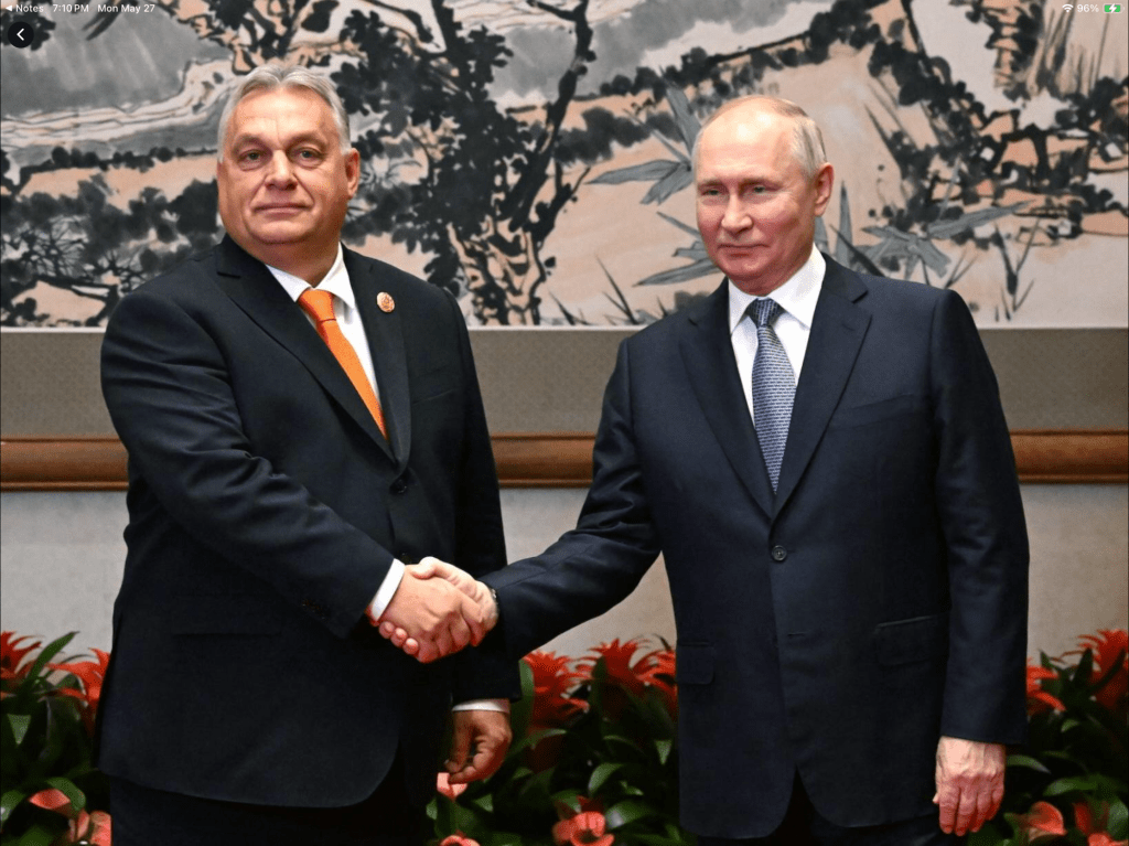 “Our lawyers and officers are hard at work to see how Hungary can maintain its NATO membership in a way that it wouldn’t have to take part in NATO actions outside NATO territory.” [Sinead Baker, Business Insider, May 24, 2024.] In other words, he wants it both ways.