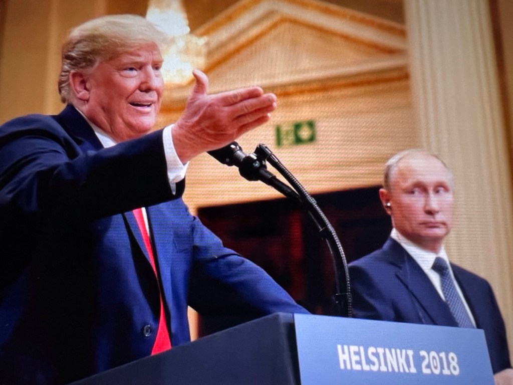 Now look at this picture. Not at Trump being his usual bombastic self. Look at the expression on Putin’s face. Doesn’t that tell you all you need to know? Because Vladimir Putin may be evil . . . but he’s not stupid. He’s got Trump’s number, and it’s a big #1. He knows Trump is all about getting himself back into the White House for four more years, after which . . . well, he just doesn’t give a shit.