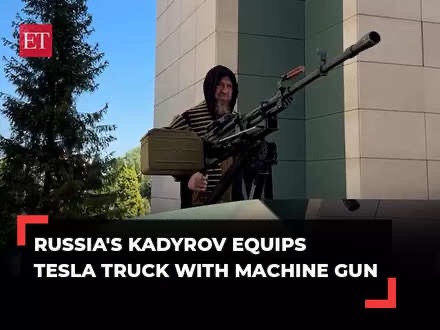 In his video, Kadyrov is shown driving the Tesla through an empty square in the capital city of Grozny, then exiting the truck and standing behind the machine gun with an ammunition belt draped around his neck.