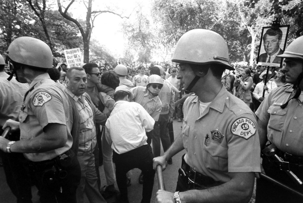 I remember that one, and it took a nasty turn when thousands of anti-Vietnam-War protesters took to the Chicago streets to voice their anger at Democratic presidential candidate Hubert Humphrey’s support of the war. Police and National Guardsmen clashed with the protesters, both outside and inside the convention hall. Delegates and members of the press, including Mike Wallace, were roughed up. Chicago Mayor Richard Daley was later blamed by a federal investigative committee for inciting his police to riot.