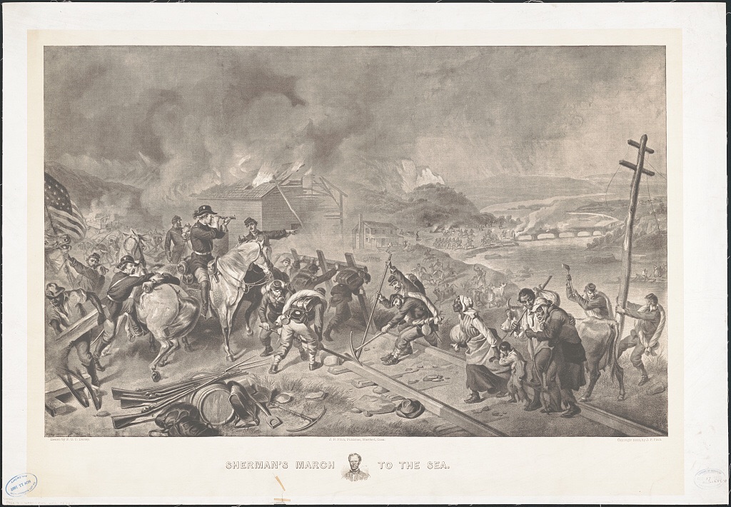1864. General Sherman orders civilians evacuated from Atlanta. The other war on U.S. territory: the Civil War of 1861-64. General Sherman had already taken Atlanta, but needed to get the civilians out of his way because of a limited number of troops to guard the city, and limited supplies to feed everyone. So it wasn’t entirely altruism that caused him to evacuate the civilians — although he did say he didn’t want to be responsible for the women and children. So off they went. Sherman provided transportation out of the city, but thereafter they were on their own.