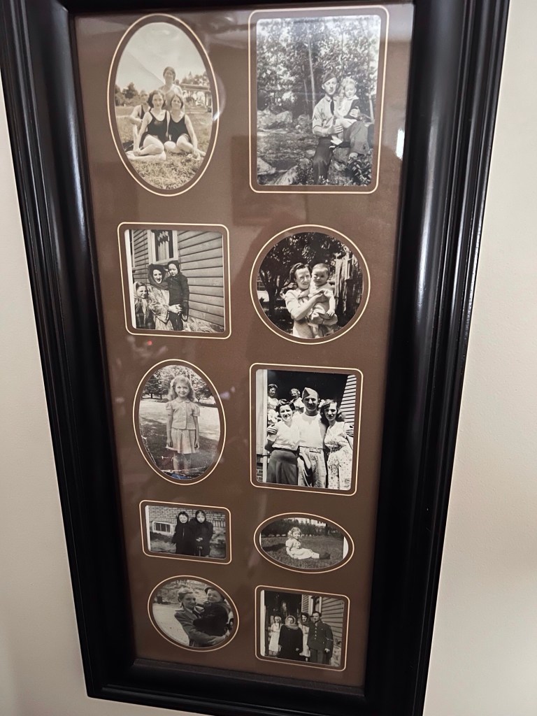 You never liked having your picture taken, which was silly because you were a very pretty woman. But since I don’t have any later photos of you, we’ll have to make do with this one. In the top left corner, you’re the bathing beauty on the left next to your mother (my Bubbe), with your father (my Zayde) seated and some woman I don’t recognize standing or kneeling behind you. I also thought you’d enjoy seeing some of the old pictures of other family members. Say hello and hug them for me, will you?