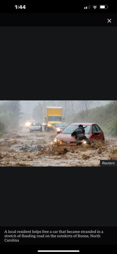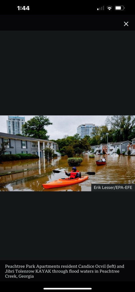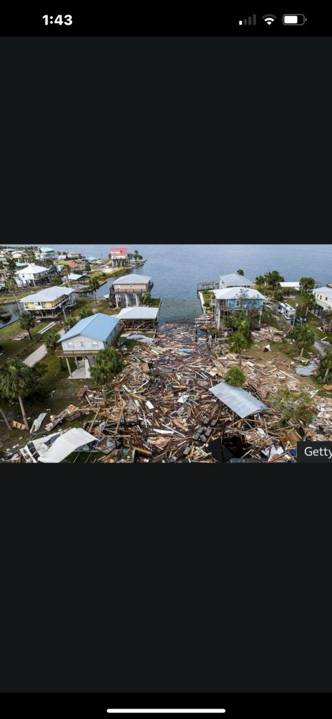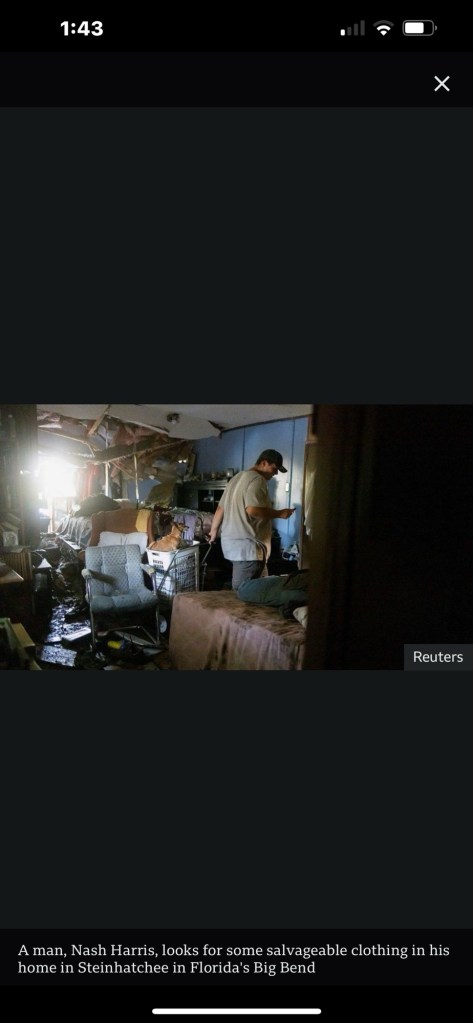 These are screen shots from a news report today of hurricane damage in Florida, and even one in Peachtree Creek, Georgia, and another in North Carolina. And I’ve been complaining about being bored?