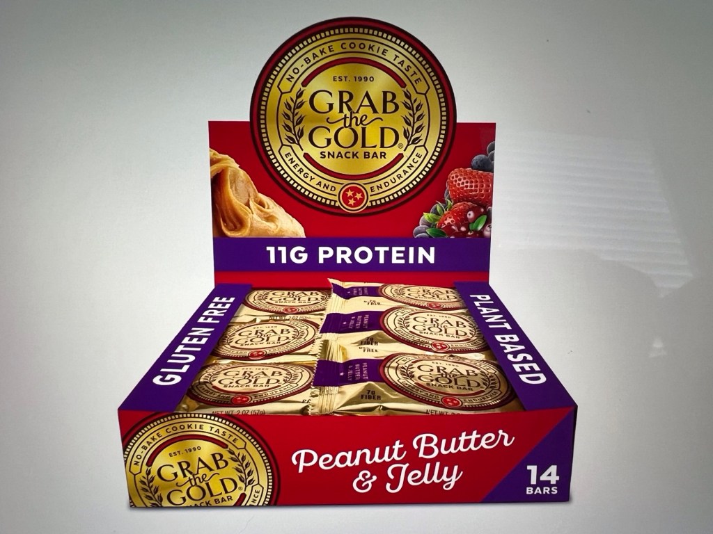 The first item I came up with was a snack bar by Grab The Gold — “Organic, Gluten free, Vegan, Kosher, & Dairy Free – 11g of Protein.” Interesting, especially in the chocolate peanut butter variety, but not what I was looking for. So, moving on . . .