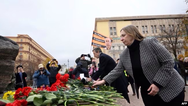 In 1991, October 30th was officially designated as Russia’s Day of Remembrance of Victims of Political Repression. Since then, each year on that date memorial events — known as “Returning the Names” — are held in cities and towns across Russia to honor the victims of Soviet-era atrocities. A memorial stone, known as the Solovki Stone, has been erected on Moscow’s Lubyanka Square — in front of the notorious headquarters of the former KGB (now the FSB). And each October 30th since 2006, the Memorial Human Rights Center has held an annual ceremony at that spot. [RFE/RL, October 30, 2024.]