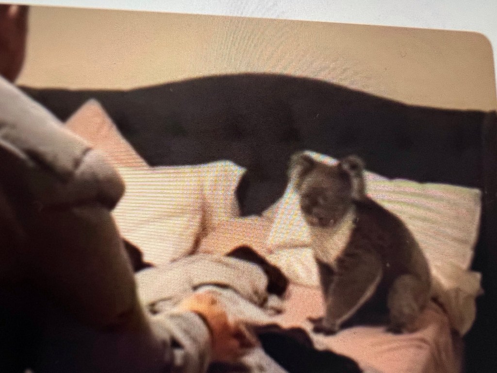 The couple surmised that the sweet little fur baby had found its way into the house through the pet door, and then couldn’t locate the exit. So Mr. Rufino took a blanket and gently nudged the intruder toward a door, where it happily took off for its natural habitat. That, of course, was exactly the right thing to do . . . but I would have been hard put to let it go without first moving in for a big hug. From the koala, of course.