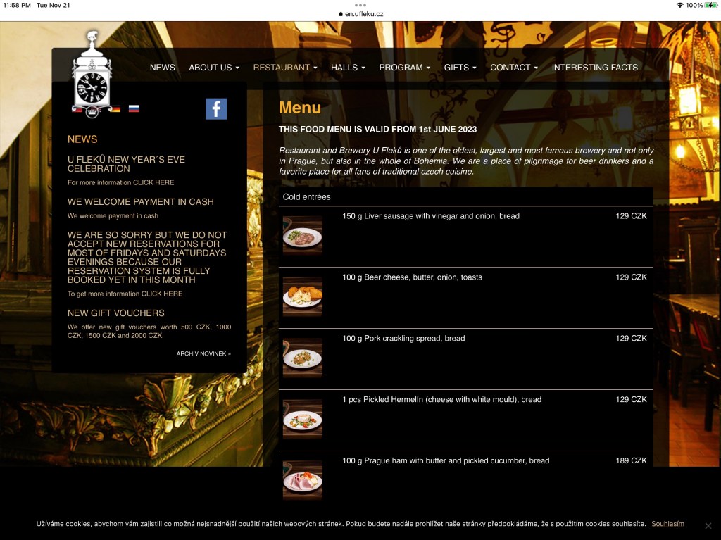 But what does one do without water for an entire weekend? Well, if you’re an American on an expense account, you either leave town or check into a hotel where there is water. But being tourist season, all the major hotels were already full, and I could only find space in a lovely little boutique hotel, the Ungelt, just off the Old Town Square. It was perfectly located, and for $200 I had — not just a room — but a beautiful two-bedroom, two-bath suite with a huge living room and a full kitchen. Good thing, too, since it turned out I was going to have to share it with a partner coming in from the Cleveland office.