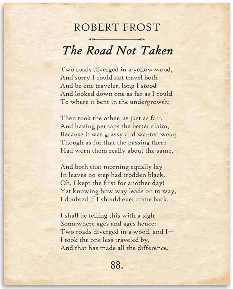 While taking a leisurely stroll — or scroll — through Facebook the other day, I chanced upon a reproduction of one of my favorite poems: Robert Frost’s “The Road Not Taken.” It was accompanied by this beautifully dream-like picture, and I sat staring at it for a full five minutes as my mind took its own backward saunter through time.