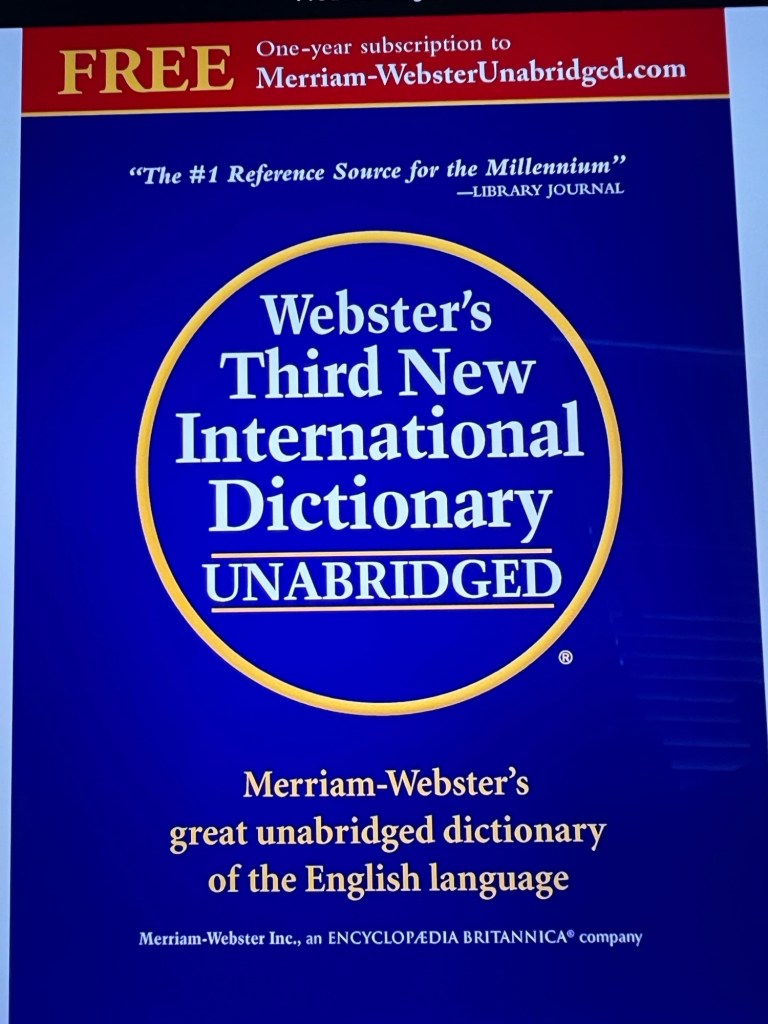 Not only does this edition of the eminent Webster’s Unabridged International Dictionary list for $129 ($82.93 at Amazon) . . . it boasts of 2,662 pages of mostly unused words.