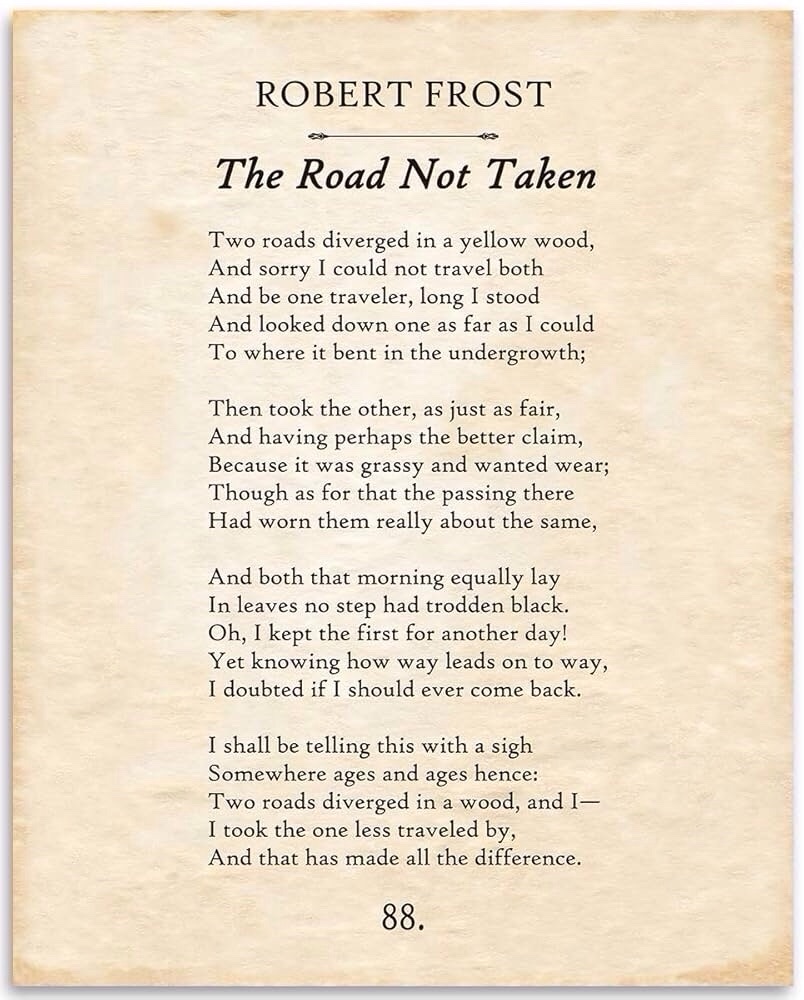 And so, in the end, I took the road less traveled by . . . and it has, indeed, made all the difference.