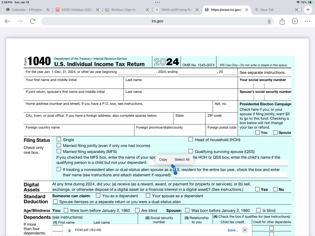 Do My Taxes: Both of my 1099 forms arrived in Saturday’s mail, so I can now sit down, tap the numbers into my computer, and let H&R Block do the rest. I know the IRS won’t start accepting returns for another week, but I figure if I get mine into the system early, perhaps I’ll be near the head of the line to get my refund early as well.