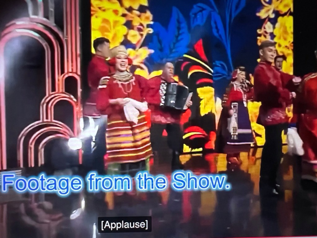 There were a few shots of the entertainment portion of the show — a bit of Russian folk dancing — while the Feenstras were in the “green room,” enjoying snacks and having makeup applied for the cameras.