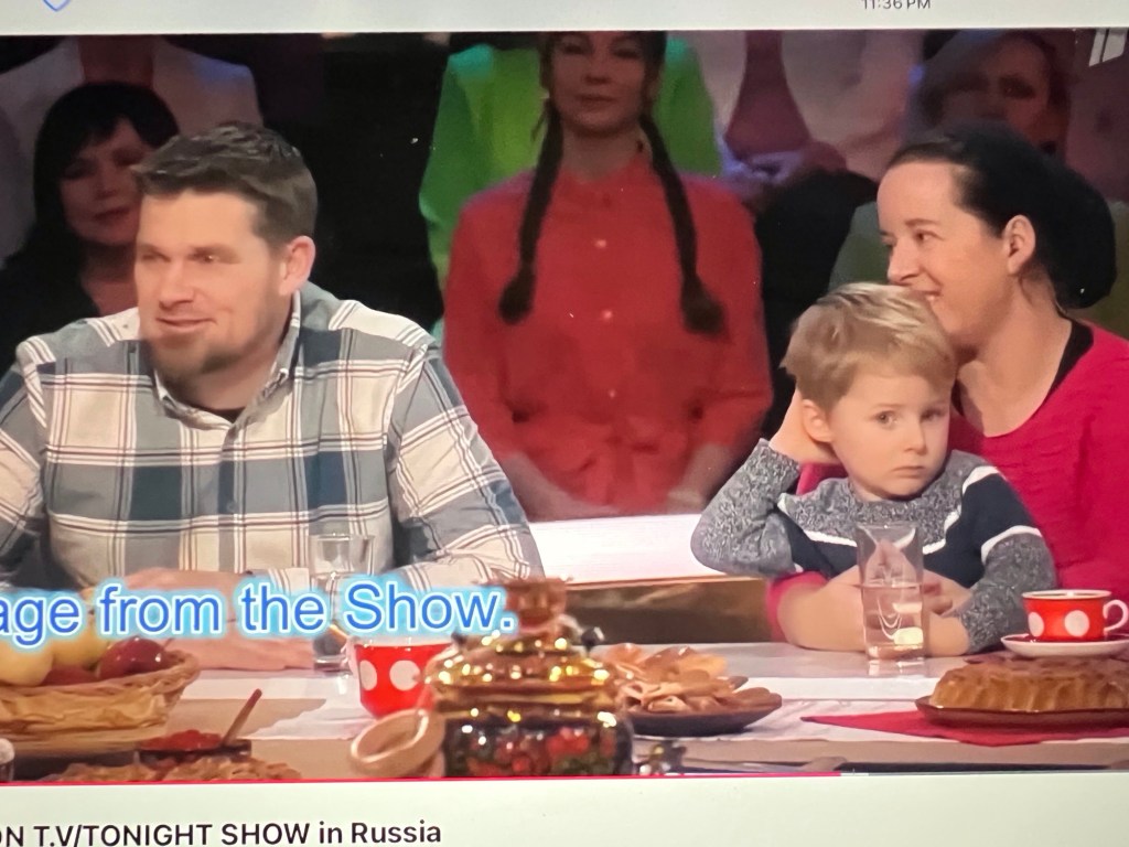 When last seen, they were in Moscow for several days to attend an agricultural show, and to see the sights. They were to have returned home on a Friday, but now we hear that they were asked to extend their stay until Monday in order to appear on Russia’s version of the Tonight Show — Sevodnya Vecherom — to be filmed at the preeminent Mosfilm movie studios, and shown later on state-controlled TV Channel One.