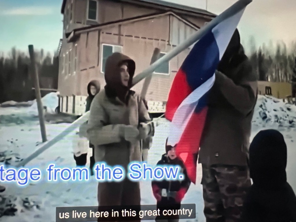 The host of the show spoke as slides were shown of the family arriving in Moscow the previous year, of their new farm, and — not surprisingly — of the day they raised the huge Russian flag on their property. There were also scenes of some of the children harvesting eggplants during the summer, while singing a Russian song. I hadn’t seen that one before, and it was . . . well . . . charming. Staged, but charming.