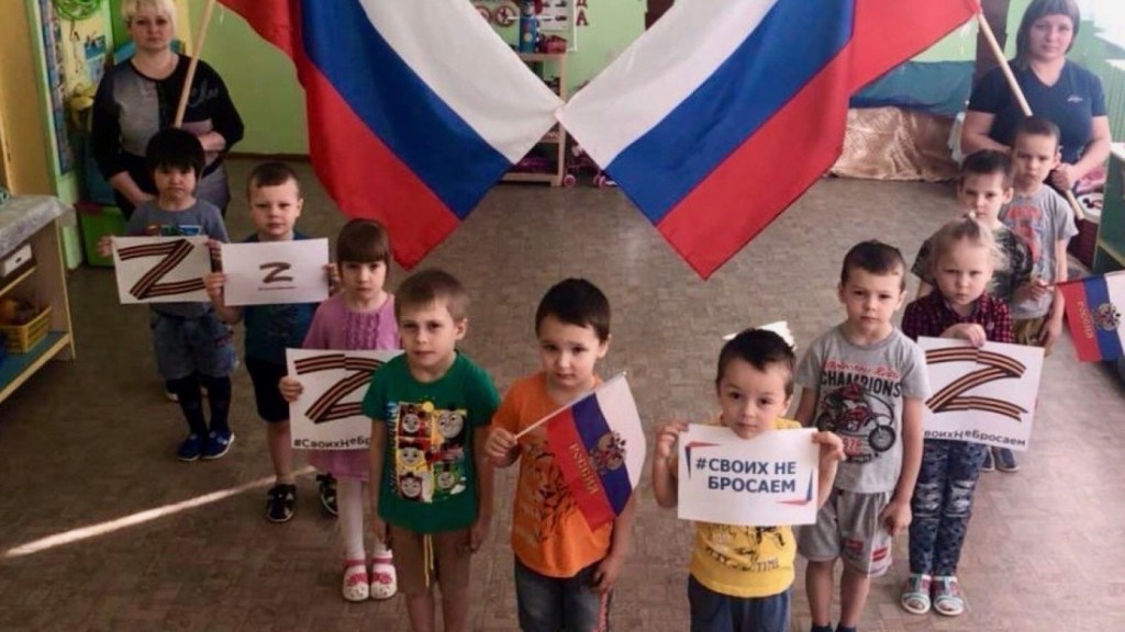 In his documentary he shows children being ordered to march with the Russian flag, reading newly-printed history books defending Russia’s invasion of Ukraine, and competing in grenade-throwing tournaments. He also spoke of war veterans — often former convicts from the Wagner paramilitary group — visiting schools to preach “patriotic values” to the children. “Schools are one of the main places where they spread propaganda,” he says. “Fascism can take root in the simplest ways — starting in schools, with children.” [Id.]
