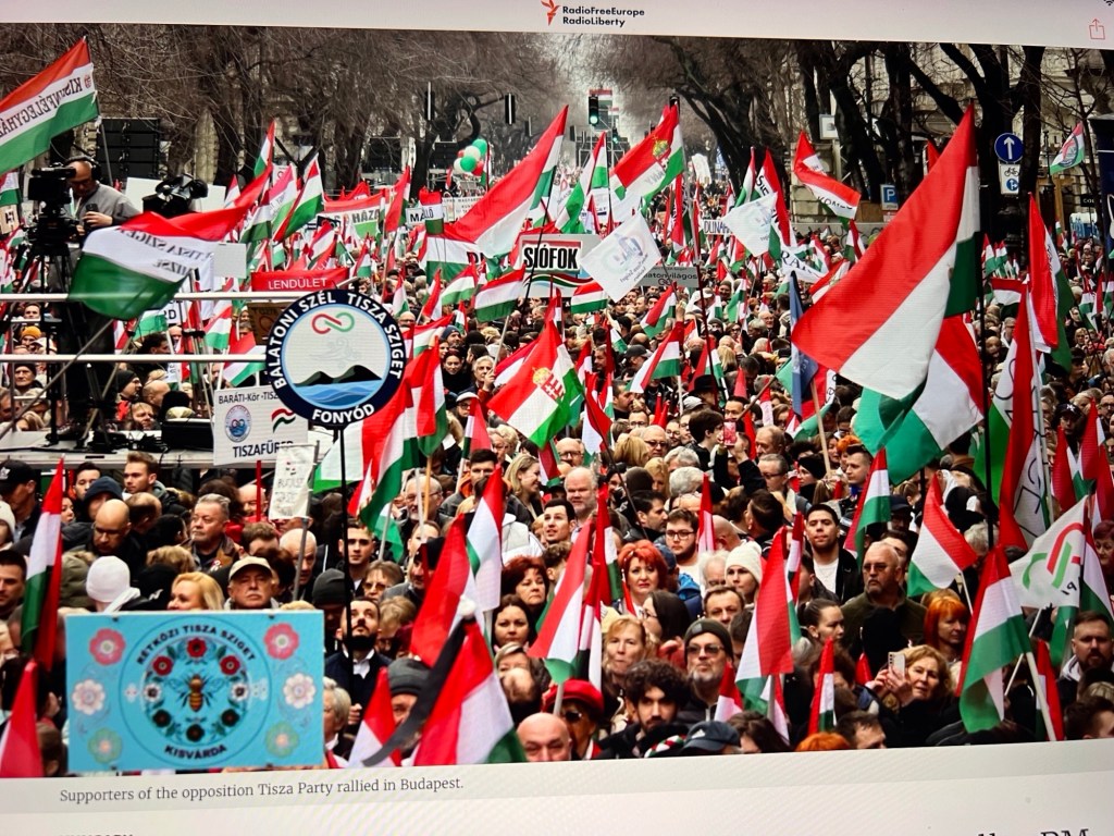 Orban’s sharp right turn toward Russia has been obvious for some time. But, since the last election in Hungary that returned his Fidesz Party to power, opposition has been growing, led by the Tisza party, ironically headed by a former Orban ally, Peter Magyar. On Saturday, some 50,000 backers of Tisza rallied in the capital city of Budapest, where Magyar said he would release a popular survey on twelve key economic and political issues in order to hear the “voice of the nation.” [RFE/RL, March 15, 2025.]