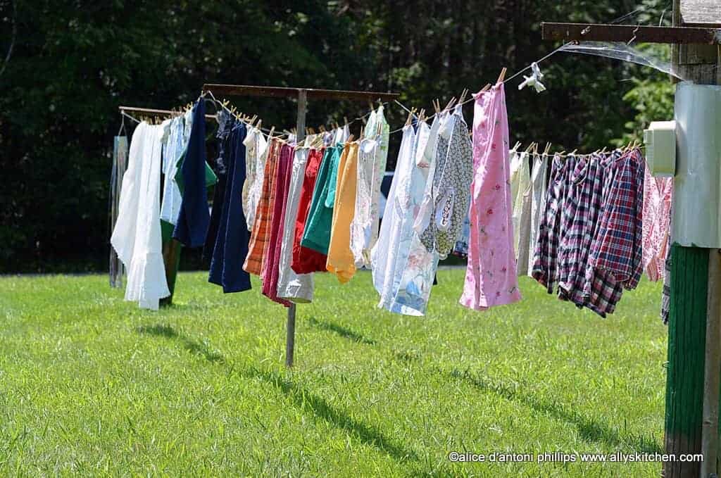 There are also things I don’t remember about those days, because we didn’t have them. We didn’t have central heating; the only warmth was provided by that oil stove in the kitchen, so the parlor door was kept shut in the winter, and the bedrooms were always freezing cold at night when the stove was turned way down to conserve the oil. We didn’t have a second bathroom, a second car, a second phone, or a guest bedroom. We also didn’t have a washer or dryer. I clearly recall my 98-pound mother every Monday, down on her knees, leaning over the bathtub and scrubbing our clothes, towels, sheets, everything, on a washboard; then rinsing and rinsing, and wringing it all out by hand — she had some strong hands! — then finally hanging it all on an outside clothesline to dry. In the winter, everything would freeze to the texture of cardboard, and the sheets stood up by themselves and smelled so clean and fresh. And then, of course, it all had to be ironed.