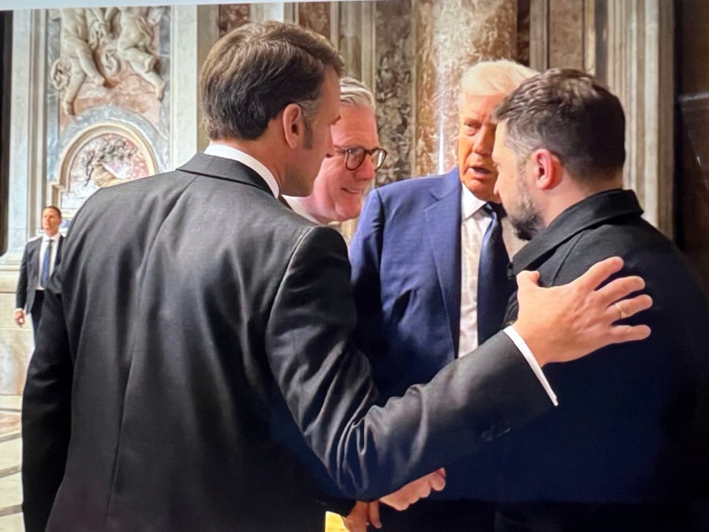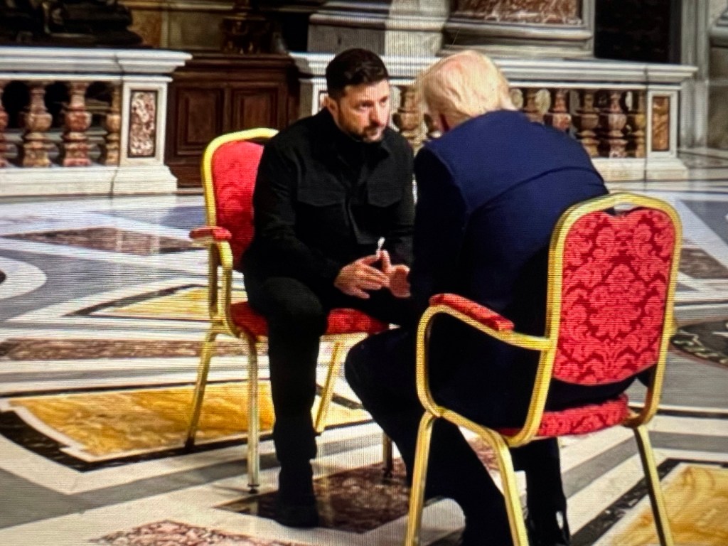 After weeks of stomping on Ukrainian President Zelensky, while double-jointedly kissing the backside of Russian President Putin, he suddenly came up with the following mind-blowing comments following meetings with Zelensky and with French President Macron and British Prime Minister Starmer . . . while in the Vatican for the funeral of Pope Francis, no less:
