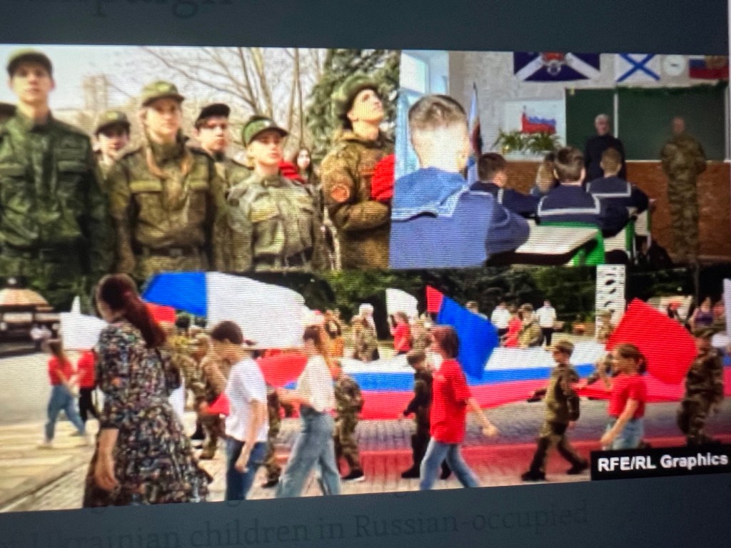 “This is the technique that the Russian Empire used in order to quickly assimilate the population after conquering new territories, to make them obedient to the regime. The main thing is to resettle [them] and start reeducation. That is, to see what needs to be done in order to get these children obedient to the [Putin] regime as soon as possible. Make them ready to live in the Russian Federation and continue to send them to Russia, to families, to boarding schools.” [Id.]