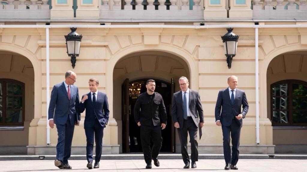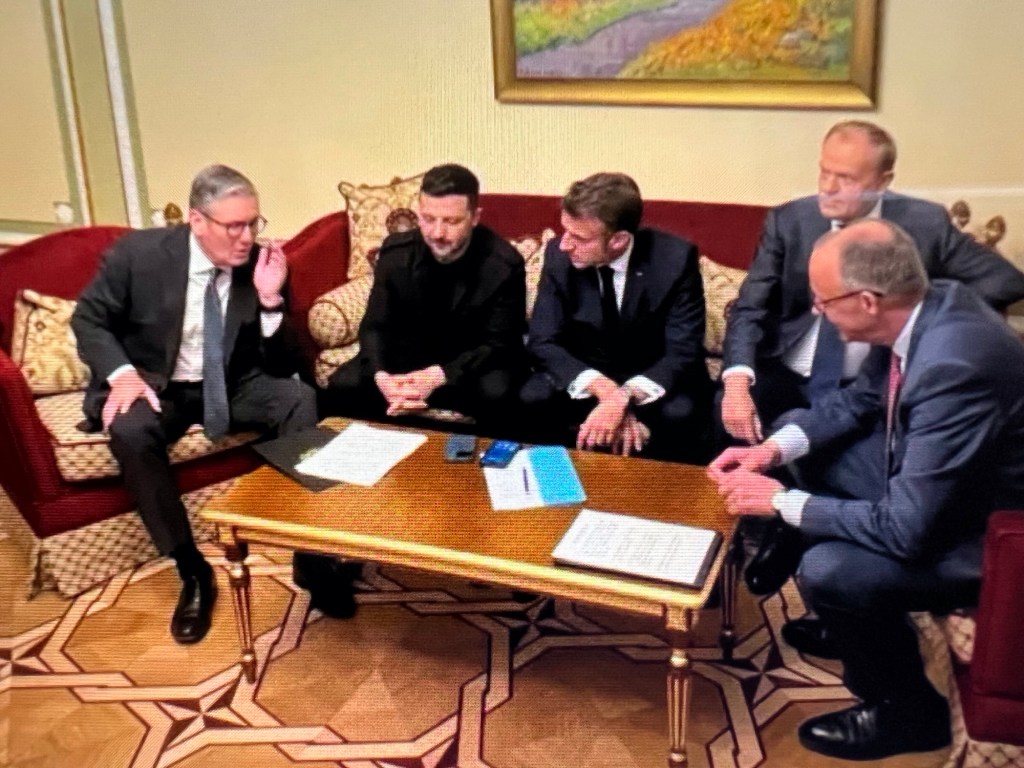 The meeting referenced in my earlier post today took place in Kyiv, with around 30 world leaders attending. Most participated virtually; but four risked their lives by traveling to the war-torn capital in person: Britain’s Prime Minister Keir Starmer, France’s President Emmanuel Macron, Germany’s Chancellor Friedrich Merz, and Poland’s Prime Minister Donald Tusk.