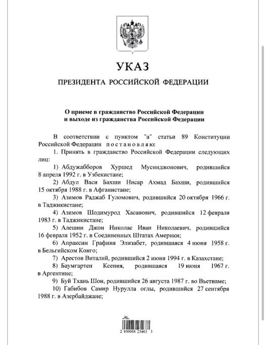 Over the years, he has continued through the process of obtaining temporary residency, then permanent residency, and finally — in September of 2022 — Russian citizenship and a Russian passport. And recent records show that he has been issued a Russian tax ID number. [Andrei Soshnikov, et al., RFE/RL, May 30, 2025.]