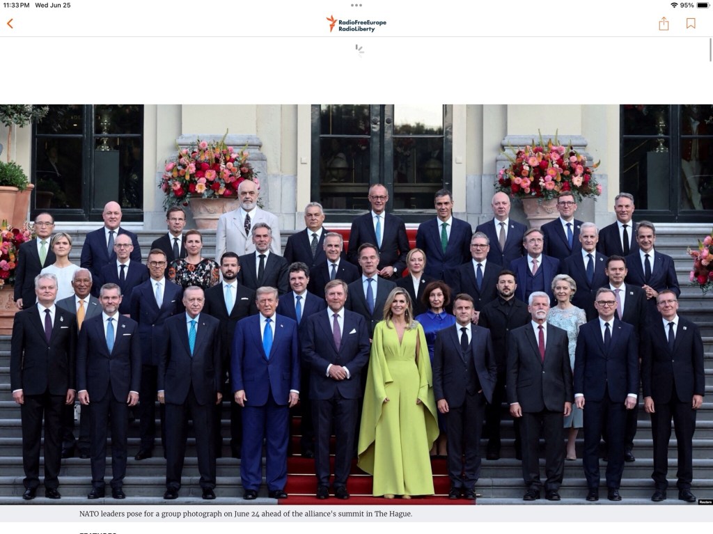 There was, however, a brief passage stating that “allies reaffirm their enduring sovereign commitments to provide support to Ukraine, whose security contributes to ours, and, to this end, will include direct contributions towards Ukraine’s defense and its defense industry when calculating Allies’ defense spending.” [Rikard Jozwiak, RFE/RL, June 25, 2025.]