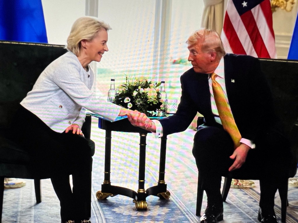 Monologue delivered to EC President Ursula von der Leyen, July 27th: “And the other thing I say to Europe, we will not allow a windmill to be built in the United States, they’re killing us. They’re killing the beauty of our scenery, our valleys, our beautiful plains. And I’m not talking about airplanes, I’m talking about beautiful plains, beautiful areas of the United States, and you look up and you see windmills all over the place, it’s a horrible thing. It’s the most expensive form of energy; it’s no good. They’re made in China, almost all of them. When they start to rust and rot in eight years, you can’t really turn them off, you can’t bury them, they won’t let you. But the propellers, the props, because they’re a certain type of fiber that doesn’t go well with the land, that’s what they say. The environmentalists say you can’t bury them because the fiber doesn’t go well with the land; in other words, if you bury it, it will harm our soil. The whole thing is a con job.”