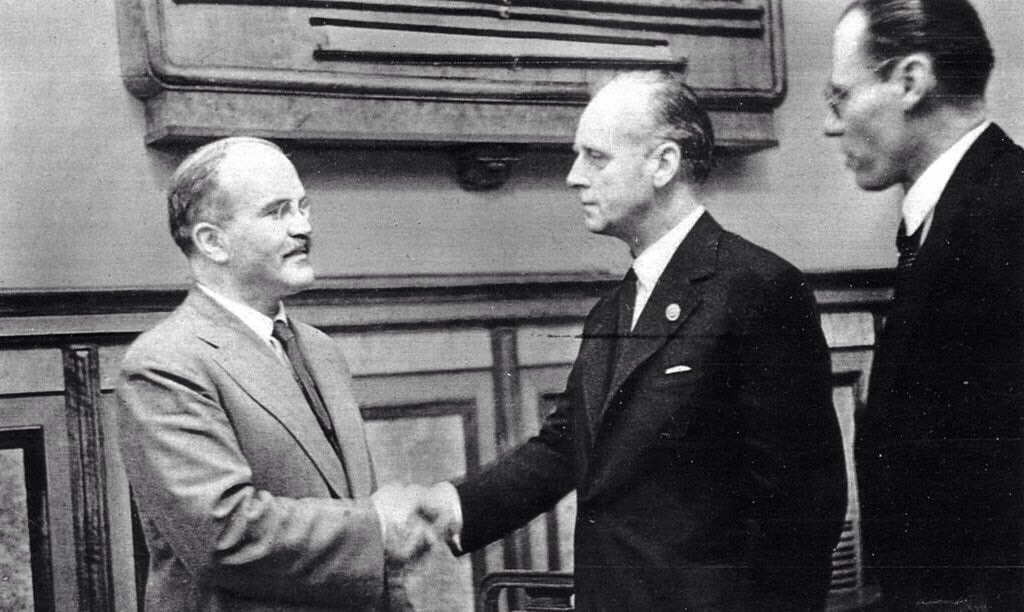 On August 23, 1939, Nazi Germany and the Soviet Union signed a non-aggression pact, pledging that their respective countries would never launch an attack against the other, nor interfere with one another’s allies. It is best known as the Ribbentrop-Molotov Pact, for the two officials who signed it in Moscow on behalf of their governments: Germany’s Foreign Minister Joachim von Ribbentrop and Russia’s Foreign Minister Vyacheslav Molotov.