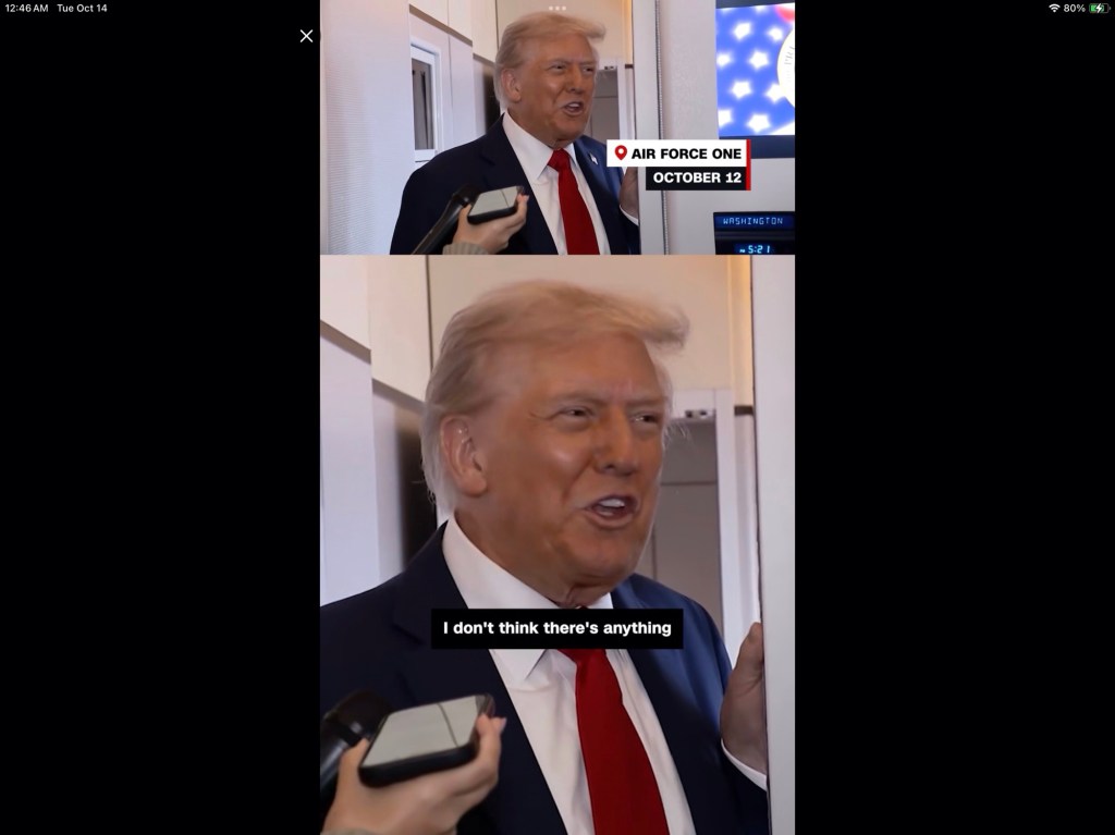 Aboard Air Force One yesterday, reporters asked Trump whether he thought his role in negotiating the ceasefire agreement between Israel and Gaza would be his ticket to heaven. Flushed from his great success, he was in a jovial mood and had this to say:
