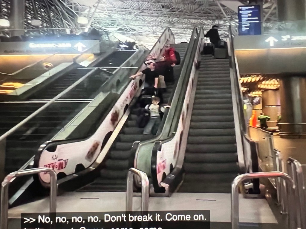 Next they schlepped everything onto the Moscow Metro, and arrived at the airport in plenty of time to navigate passport control, check their big bags, and get a bite to eat before departure to Istanbul.