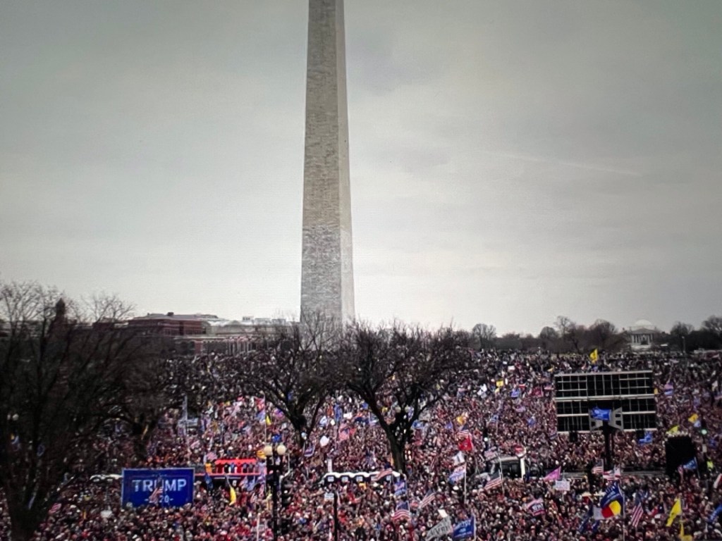 Under this administration, our country has well and truly been sold out in exchange for the personal power of one man and the enrichment of his evil oligarchy. And it began just two weeks before he was due to leave office, when he addressed that rally on the National Mall and encouraged the crowds to march to the Capitol . . .