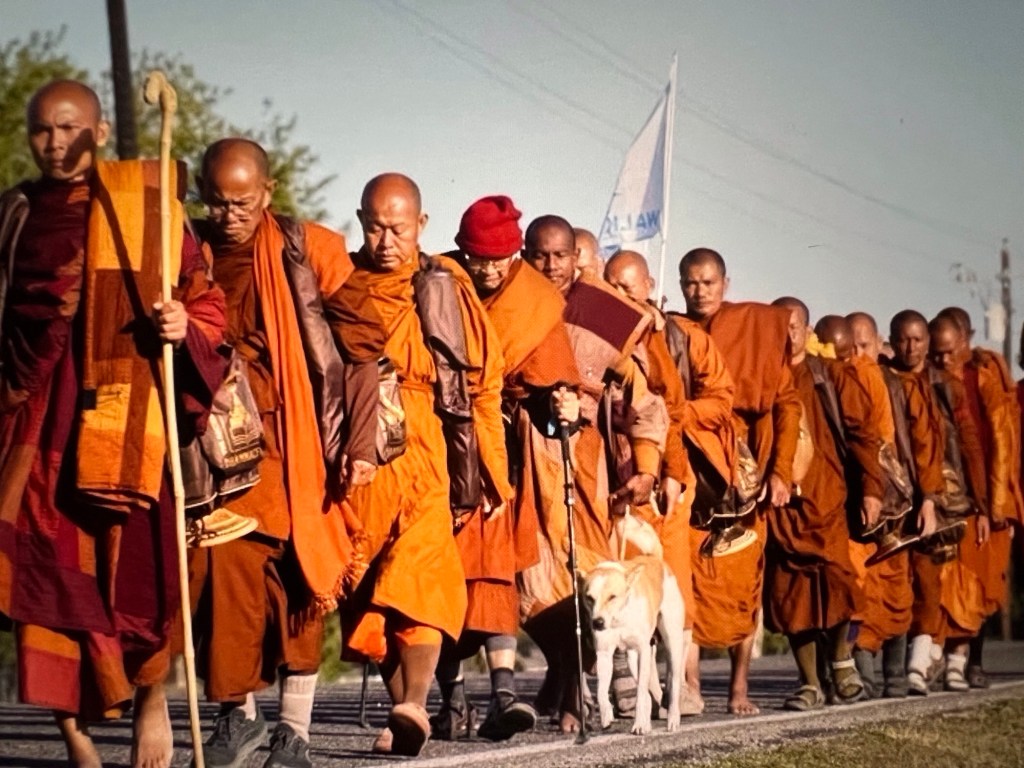 I have been following, with great wonder and admiration, the Buddhist Monks engaged in a “Walk for Peace” across America as they spread their messages of love, compassion and unity. Together with their intrepid dog Aloka, they have captured the minds and spirit of people around the world in these times of political turmoil and humanitarian failure.