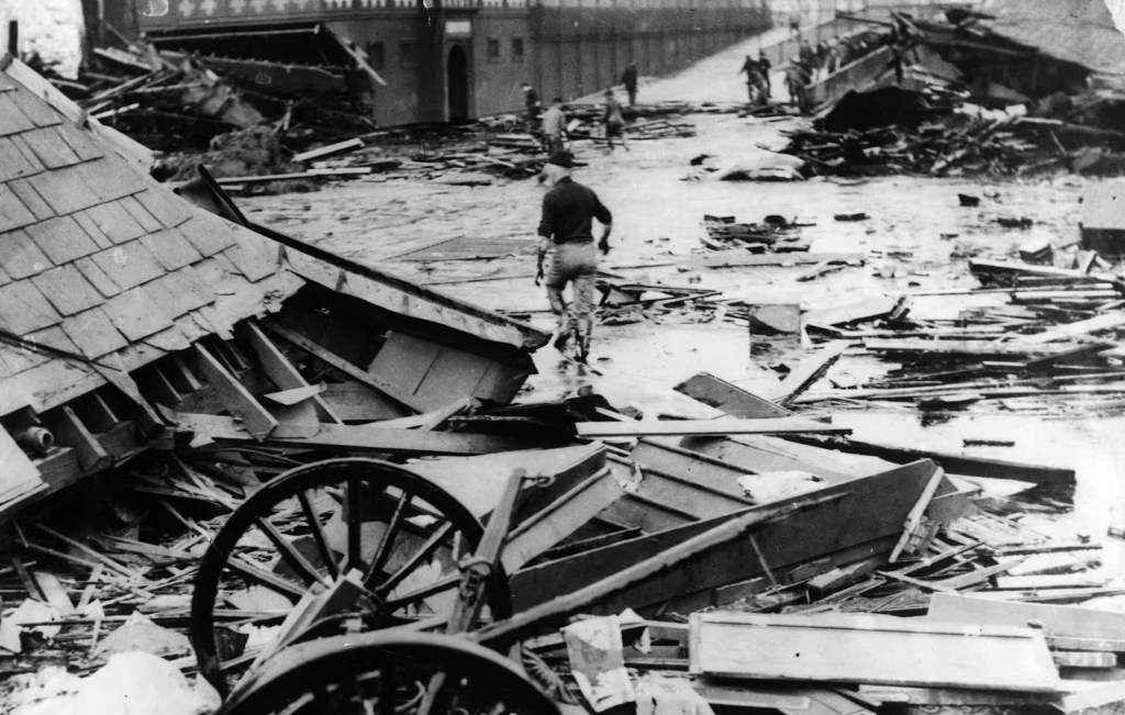 It was an unseasonably warm winter day in Boston, where workers at the United States Industrial Alcohol building near Boston’s North End Park were loading product onto freight-train cars inside the building. It was close to lunchtime when a 58-foot-high tank filled with 2.5 million gallons of crude molasses exploded, the bolts holding the bottom of the tank shooting out like bullets, and the hot molasses spewing forth in an eight-foot-high wave that swept away the freight cars and caved in the building’s doors and windows. The few workers in the cellar of the building were trapped and killed. [“This Day in History,” History.com, January 15, 2026.]