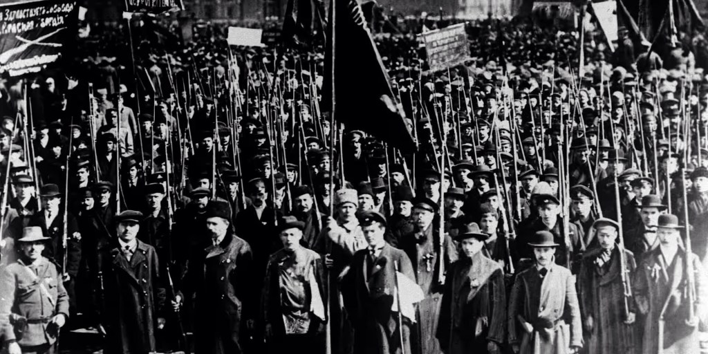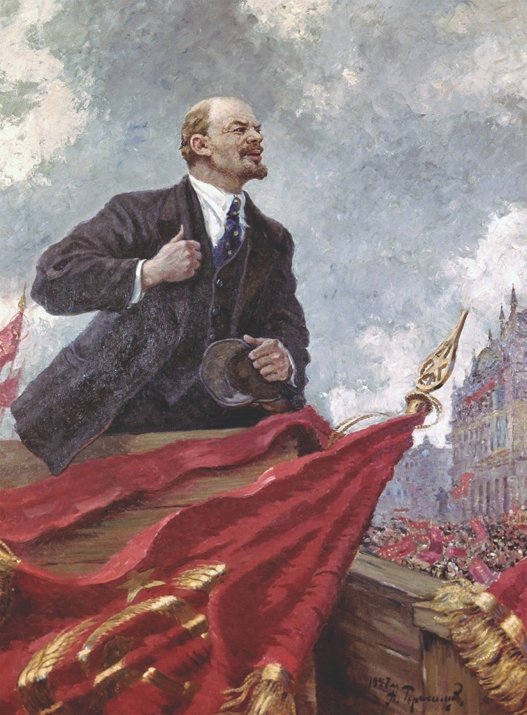 Meanwhile, a man known as Vladimir Ilyich Lenin — leader of the Bolshevik Revolutionary Party living in exile in Switzerland — saw his golden opportunity. Traveling secretly across enemy lines in Germany as the war raged around him, he returned to Petrograd and began his campaign to establish his party as the ruling party of Russia. By November 7th (October 23rd on the Julian calendar) of that year, he had succeeded in overthrowing the Provisional Government in a nearly bloodless coup — now known as Russia’s October Revolution — and creating the world’s first communist-style government. [“This Day In History,” History.com, March 8, 2026.]