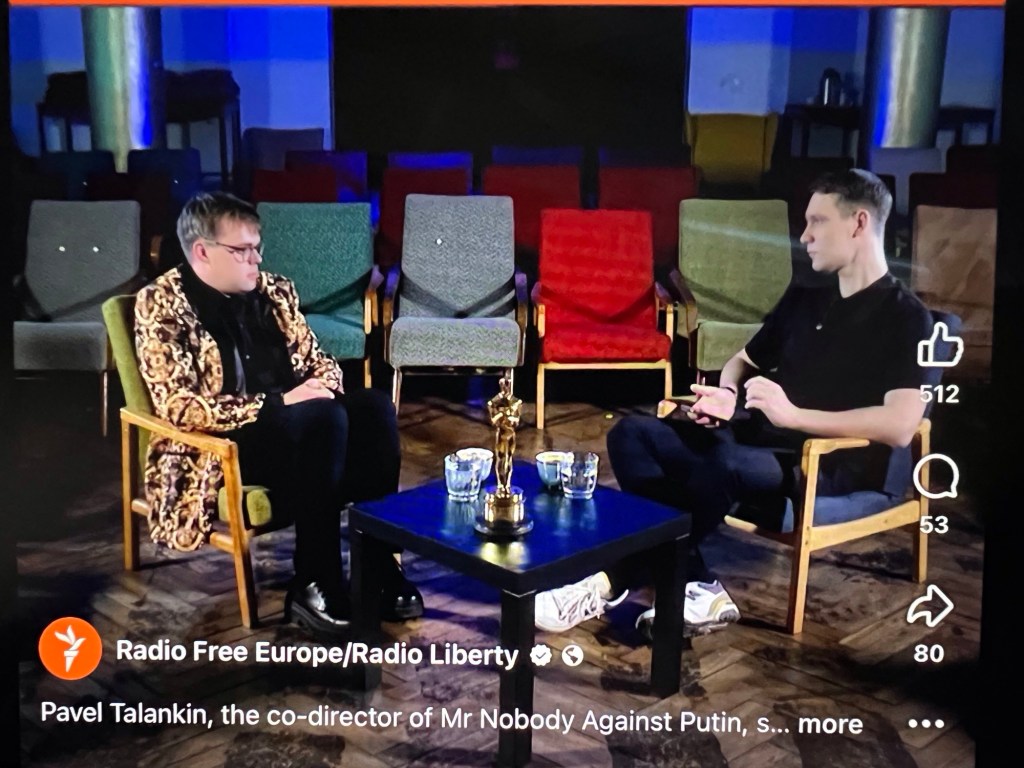 He has said that he only wonders why it took Putin so long, issuing the ban only after the award was announced. As to its effect, he says that the ban is actually “brilliant public relations,” as it renders the film of even greater interest to the people of Russia. [RFE/RL Interview, April 4, 2026.] And knowing the ingenuity of the Russians, I am quite certain they will find a way to access it.