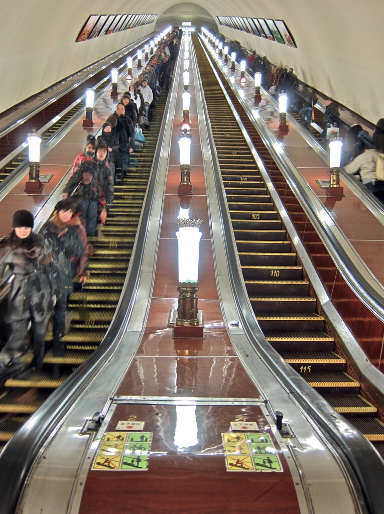 Sometimes you don’t have time to think; you just react. We were at the very top of the moving stairs, with a crowd inching toward us from behind. The child — who was around five or six years old, and apparently a veteran of the Moscow Metro system — gave me her hand, jumped onto the first step with me, and looked back to be sure her mother was right behind us. Which, of course, she was . . . still holding onto her groceries, balancing them and herself, without ever touching the handrail. I don’t know how she did that.
