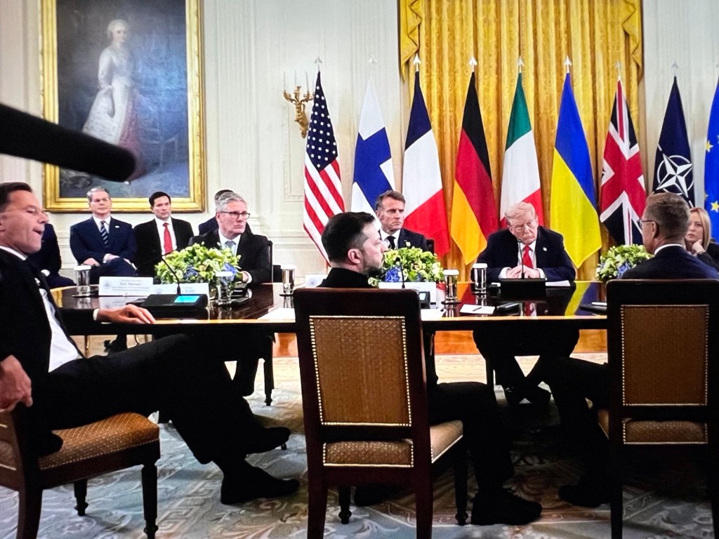 None of which had anything to do with the purpose of yesterday’s meeting, which had hastily brought together six European heads of state — Ukrainian President Volodymyr Zelensky, UK Prime Minister Keir Starmer, French President Emmanuel Macron, German Chancellor Friedrich Merz, Italian President Giorgia Meloni, and Finnish President Alexander Stubb — as well as European Commission President Ursula von der Leyen and NATO General Secretary Mark Rutte.